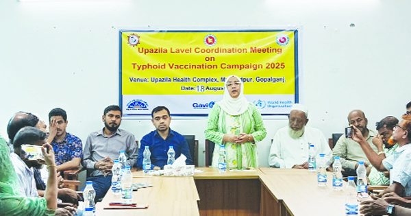 গোপালগঞ্জের মুকসুদপুরে জাতীয় টাইফয়েড টিকাদান ক্যাম্পেইন উপলক্ষে সমন্বয় সভা অনুষ্ঠিত হয়েছে। সোমবার (১৮ আগষ্ট) সকালে মুকসুদপুর উপজেলা স্বাস্থ্য অধিদপ্তরের আয়োজনে উপজেলা স্বাস্থ্য কমপ্লেক্স হলরুমে এ সমন্বয় সভা অনুষ্ঠিত হয়। উপজেলা